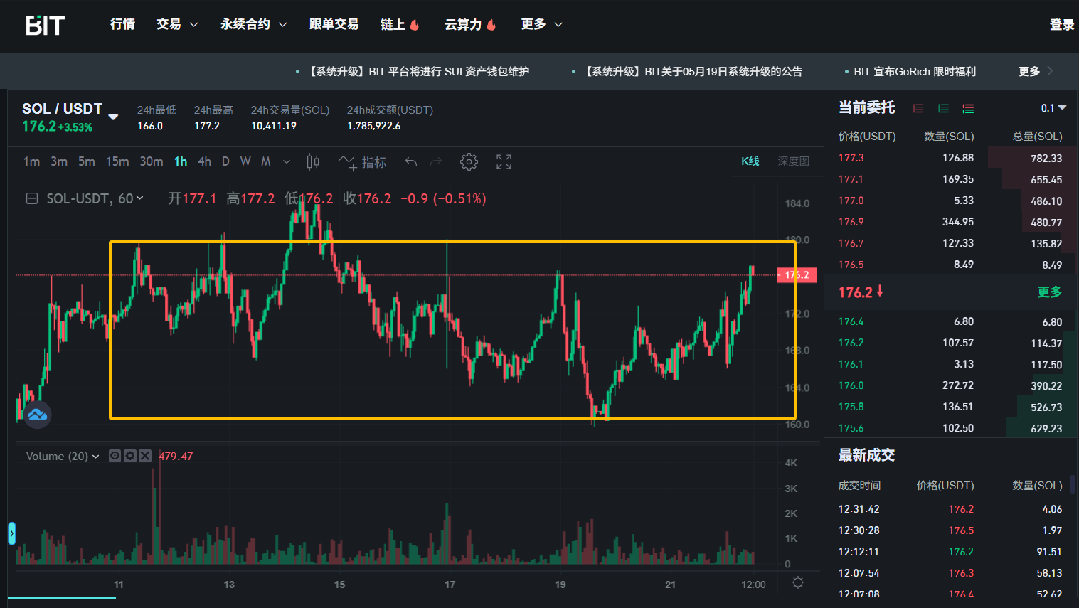 同样SOL的价格仅仅保持对比特币的跟随,价格表现弱势。