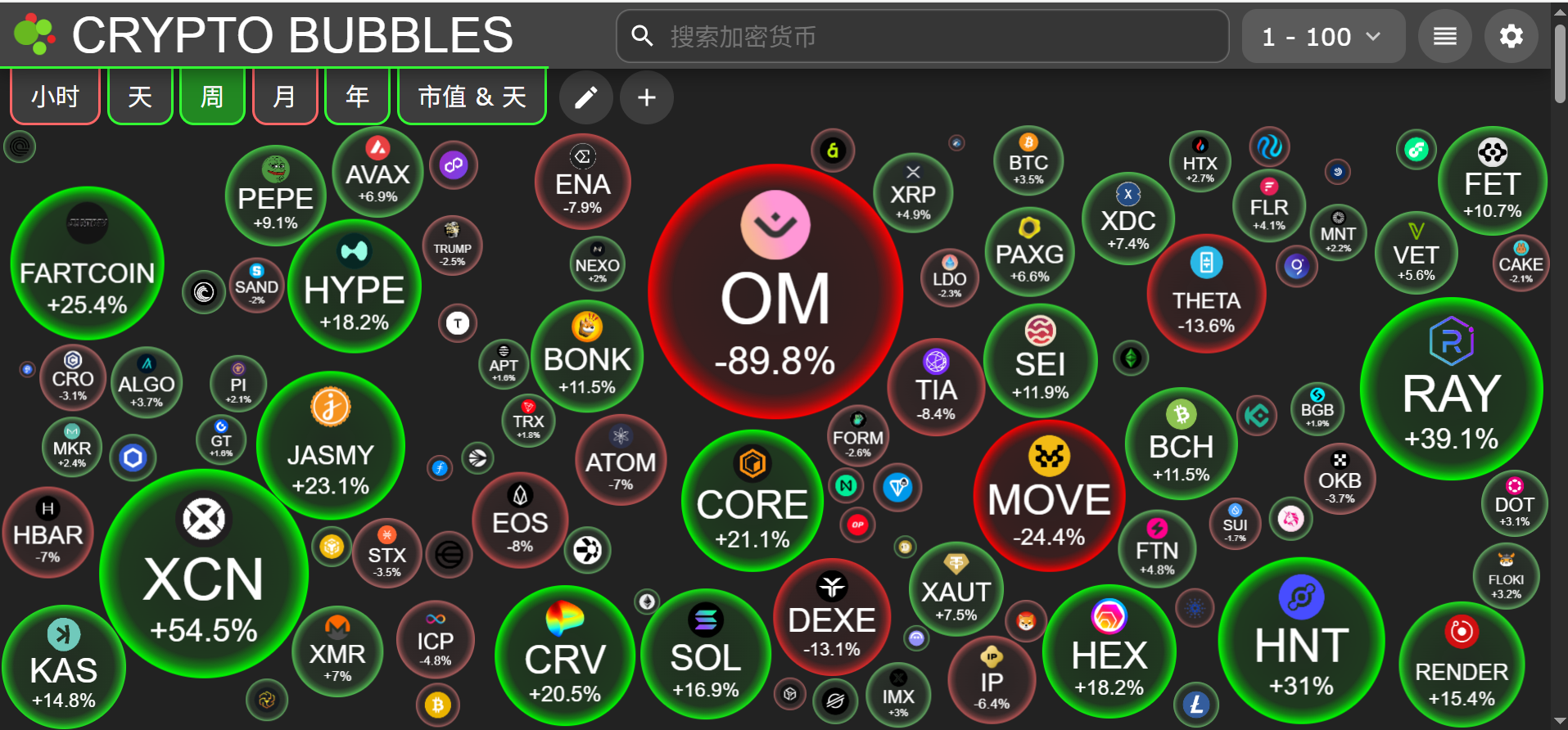 本周山寨币大部分都延续反弹的趋势,OM代币在4月14日迎来一波90%的暴跌,直接导致RWA板块跌幅超过45%。疑似代币项目直接砸盘手中筹码导致。对OM项目方可参考。