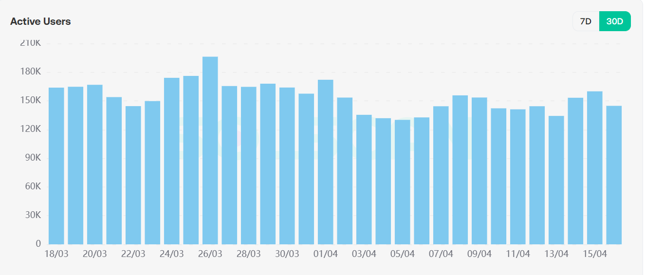 从pump.fun的数据来看,总交易量和交易笔数均呈现上升趋势,交易量较上周提升增加一倍,最多在4月15日8亿美金;交易哈希数相较于上周上涨超50%,表现出链上炒作meme的情绪和资金均有提升。但活跃用户数并未随资金上升,或许意味着更多的链上用户持观望态度。