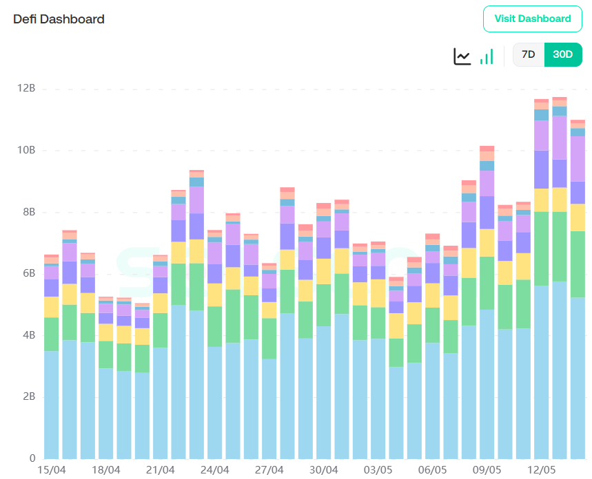 从sol生态Defi协议数据可以看到,在本周sol质押总量再次达到本月新高12B,活跃人数相应在本周迎来较大提升,平均维持在400K。说明长期投资者对后市依旧持有乐观态度,对sol币价持有上涨预期。