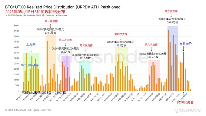 比特币的支撑数据仍然稳定,93000美金到98000美金支撑位非常稳固,虽然在102000美金出有部分筹码堆积,但据支撑位仍有距离。且该位置几乎为短期投资者,换手率足够。