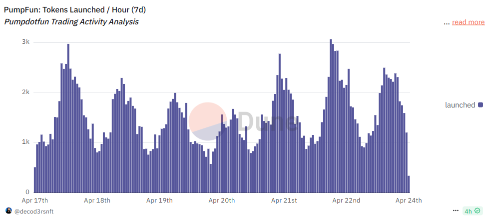 从pump.fun数据来看,总交易量较上周有明显增加,交易笔数虽然在19日和20日虽有下降,但在20日后回升,说明在大盘行情回暖下,链上的meme投资者也增加了交易活动;从活跃的地址数的增加也侧面印证了这一观点,地址数目前已回到190K。