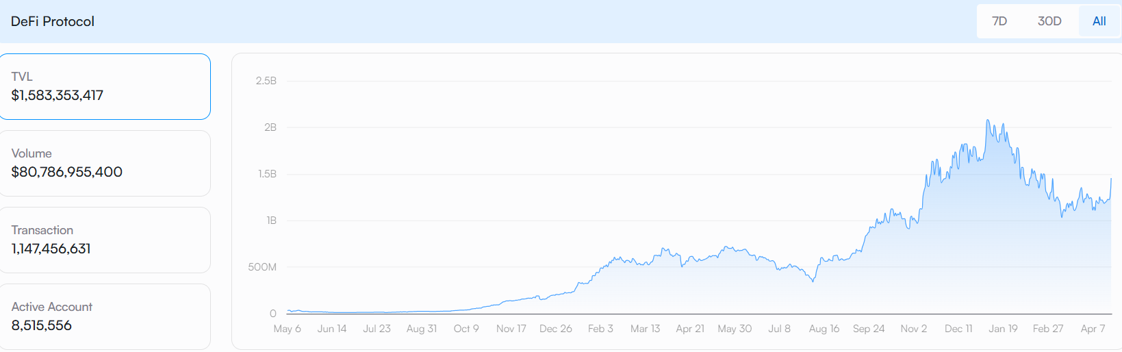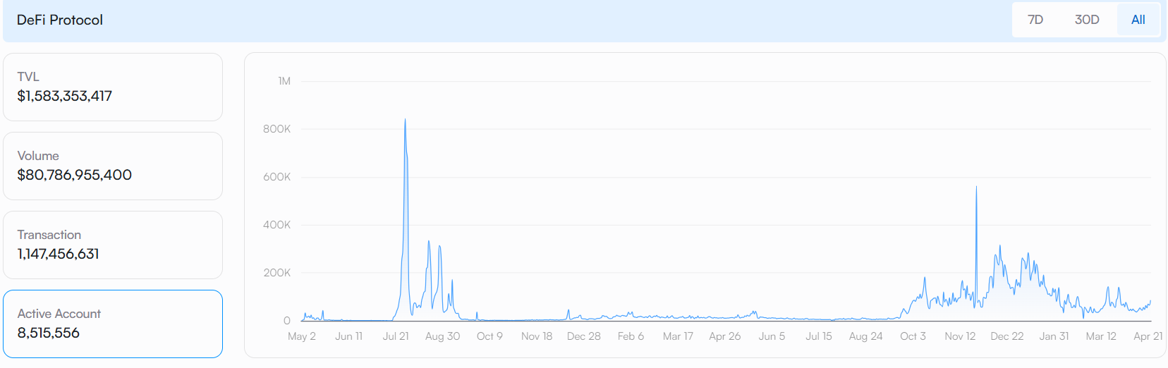 Defi(核心):总TVL达1.6B,并处于上升趋势;活跃账户数在12月份达到最高,当前数量处在相对底部状态